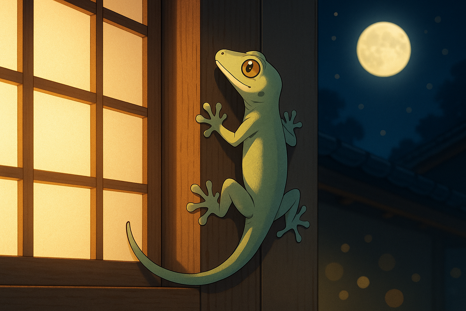 ヤモリは「家守」の当て字が示す通り、住まいと人を守る象徴として親しまれます。