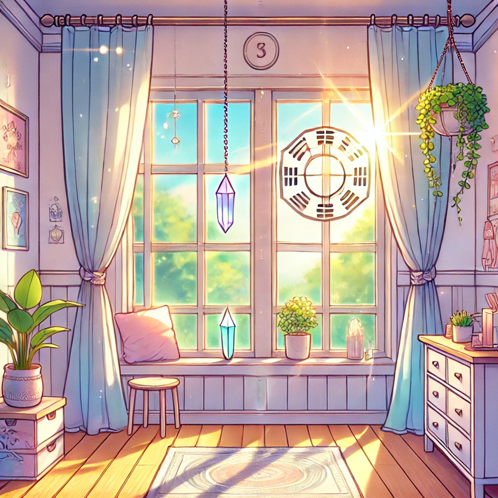 窓に風水チャームを吊るすことで、悪いエネルギーを防ぎ、良いエネルギーを引き寄せる効果があります。特に、八卦鏡や風鈴などが効果的です。